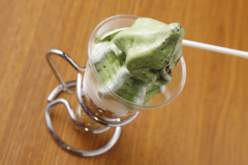 ミルクソフト×お茶+oneの「Mix Tea Cream」(540円)。写真は抹茶+オレオ