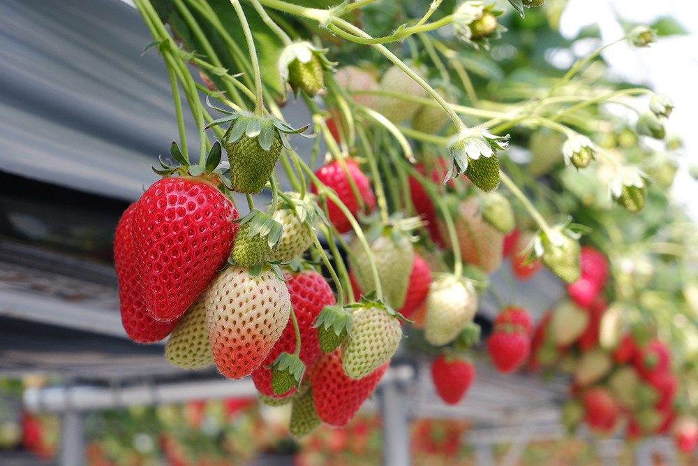 8品目156品種の果物が栽培される『JRフルーツパーク仙台あらはま』ですが、オープン現在体験できるのはイチゴ狩りのみ。苗から育てているので、生育状況次第ではありますが、6月以降にはブルーベリー狩りも楽しめるようになる予定です。さらに2022年以降には、ブドウや梨、イチジク、リンゴ、キウイなどのフルーツ狩りが収穫できるようになるプランとなっています。