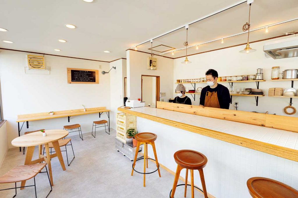 店内は白とウッドを基調とした、クリーンで温かみのある雰囲気