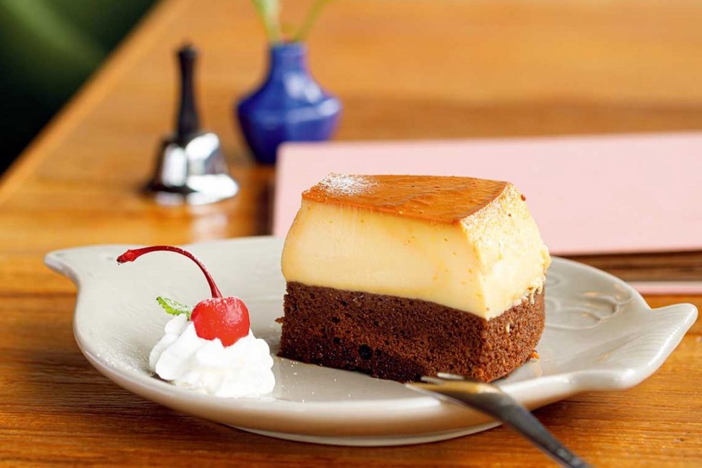 プリン好きなら絶対に味わってほしい「ブラジルプヂン」(430円)は、プリンとスポンジの二層構造が目を引く激レアアイテム。上はやさしい甘さのプリン、下はビターなチョコレートスポンジで、二層が織りなすマリアージュが口中に幸せを運んでくれます。
