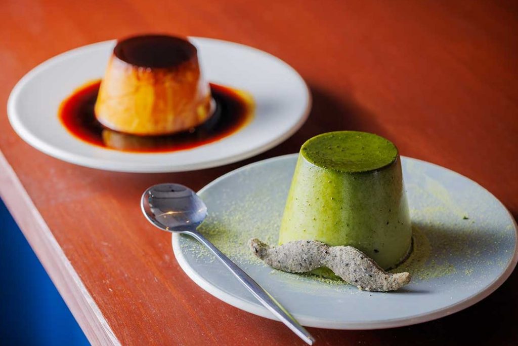 カラメルの苦みが効いた「レトロプリン」(340円)、宇治抹茶使用の「おっ茶んプリン」(450円)