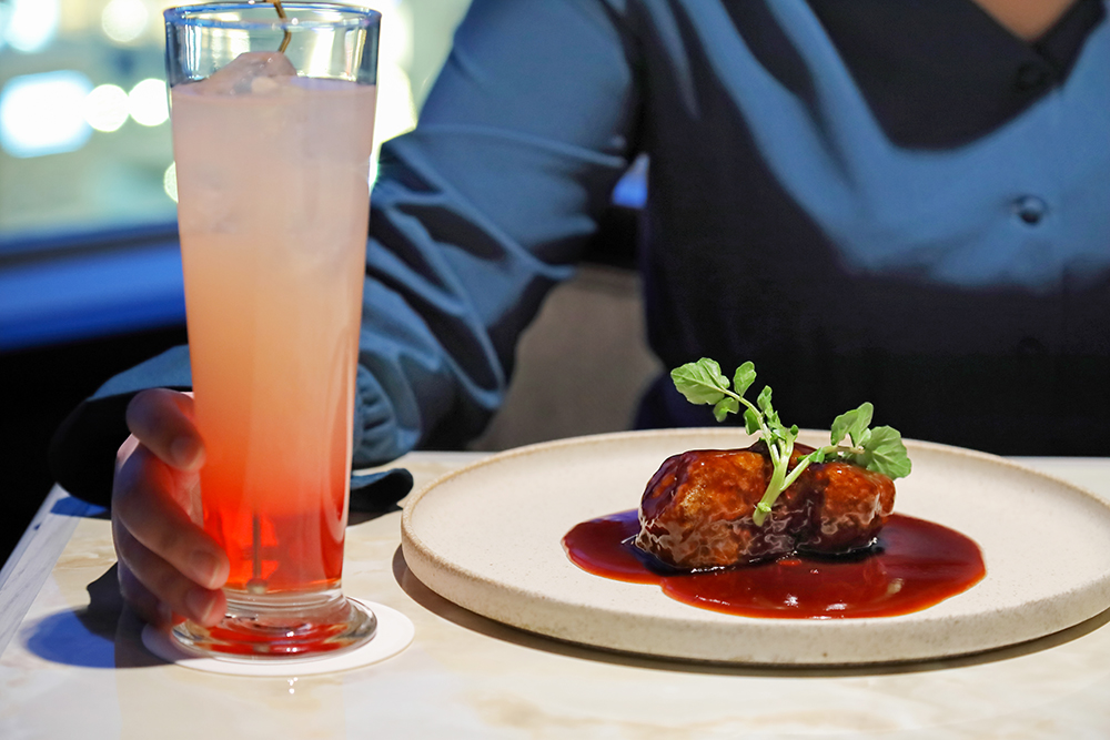 これらの料理に寄り添うのは、『桂花苑』リニューアルの際に考案されたカクテルメニュー。チャイナブルーにキンモクセイの風味をプラスした、さっぱりとした口当たりの「フレグラントブルー」や紹興酒をソーダで割り、梅干しとスライスレモンを入れた「ドラゴンハイボール」、ジンジャエールと紹興酒、レモンを合わせた「香港フィズ」などユニークなラインナップです。特に「香港フィズ」は、紹興酒を初めて飲む方にもおすすめです。