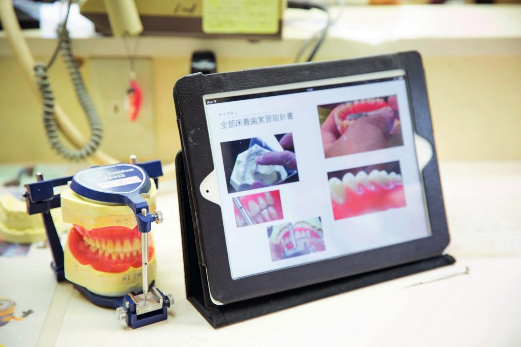 入学時は学生全員にタブレット端末を配布。実習や勉強の際の強い味方だ
