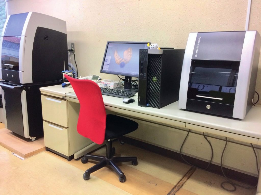 デジタル加工で歯を製作する最新鋭の機械を導入。デジタルと匠の技を融合した新しい教育を実現している