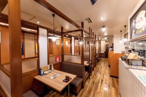 柱で区切られるオープン席と掘りごたつの半個室席がある
