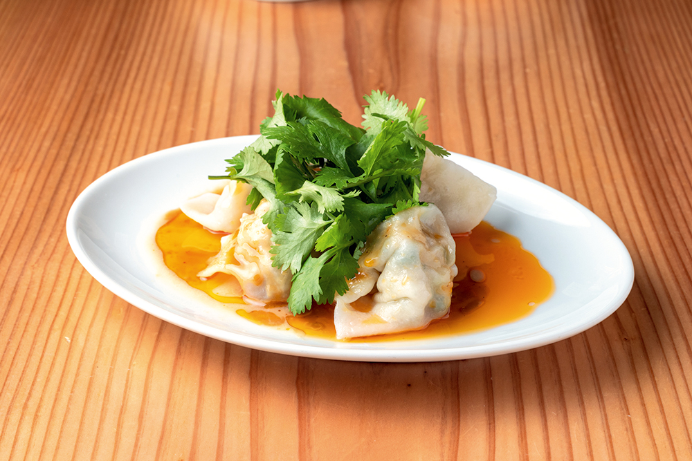 仙台のネオ餃子専門店の先駆者である『髙橋と餃子』。作り手の温かみを感じる餃子を届けたいと、作り置きはせずに注文を受けてから皮を打ち、餃子を仕立てています。プルッと艶やかな水餃子にパクチーをこんもり盛ったひと皿は、あっさりしていて女性に人気です。ゴマダレとラー油をブレンドした特製ソースでどうぞ!