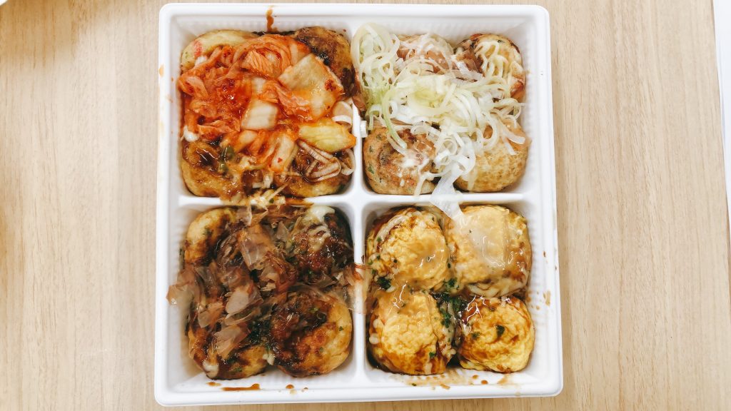 たこ焼き自体が素朴な味わいなので、さまざまなトッピングの味が引き立っている印象でした。