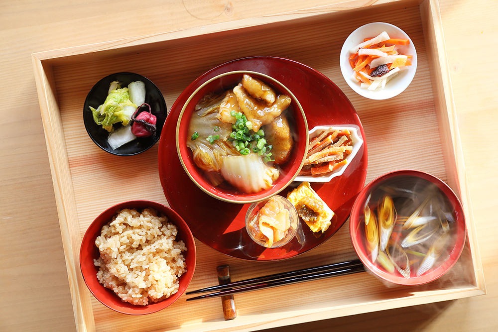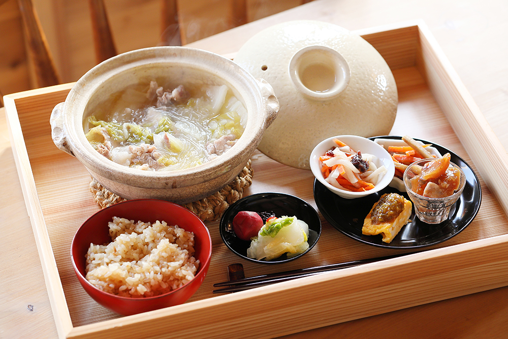 地域に息づく伝統や先人たちが紡いできたものに、現代の視点をプラスした空間を提供するお店。『さとのわ光種』に訪れたなら、鳴子漆器に盛りつけられた里山ごはんを堪能したいです。鳴子近郊の旬食材を丁寧に仕立てた膳は滋味深く、身体にじんわりと染み渡る味わい。窓の外に広がる広大な景色を眺めながら、ほっと息つく時間を過ごしましょう。