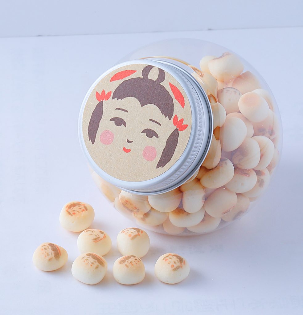 【販売店/ゆの駅しんとろ ほか】「こけしボーロ」(598円)。6種類のこけしが描かれたたまごボーロは昔懐かしのやさしい味
