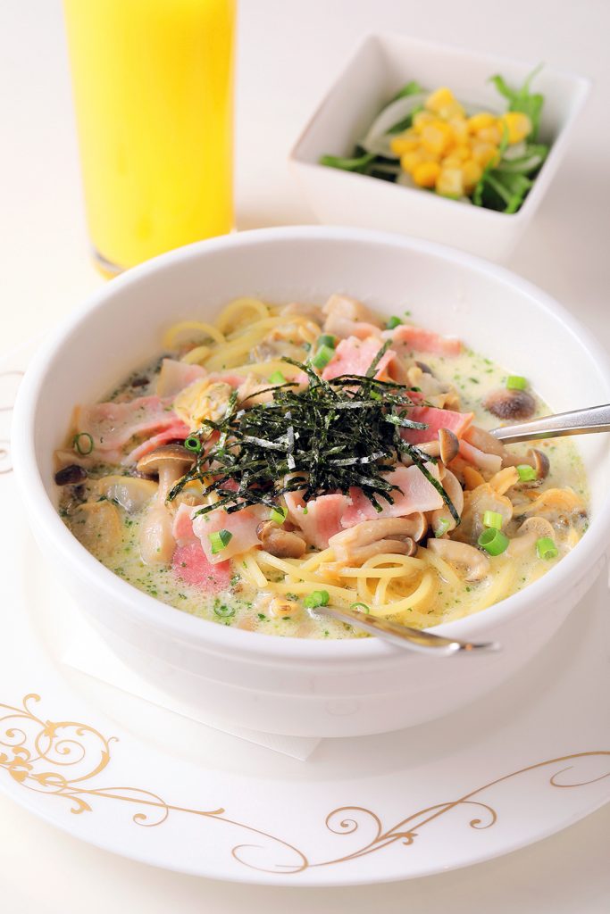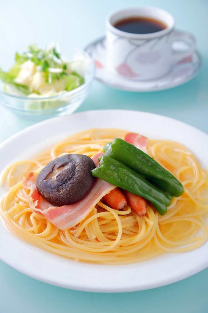 創業35年目を迎えたパスタ専門店の看板メニュー「特製スープスパゲティ」は、アサリと国産シメジ、銀河高原ベーコンの旨みが溶け出したスープが評判を呼んでいます。チーズとクリームが入っているので、太めのパスタとの絡みも抜群ですよ。最後の一滴まで飲み干したくなるスープをぜひご堪能あれ!