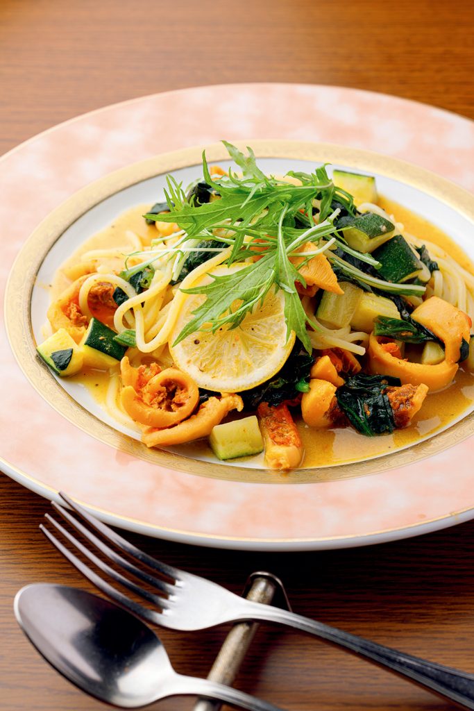 「冷製カルボナーラ」ほか、旬の食材を取り入れた多彩なパスタに出会えます