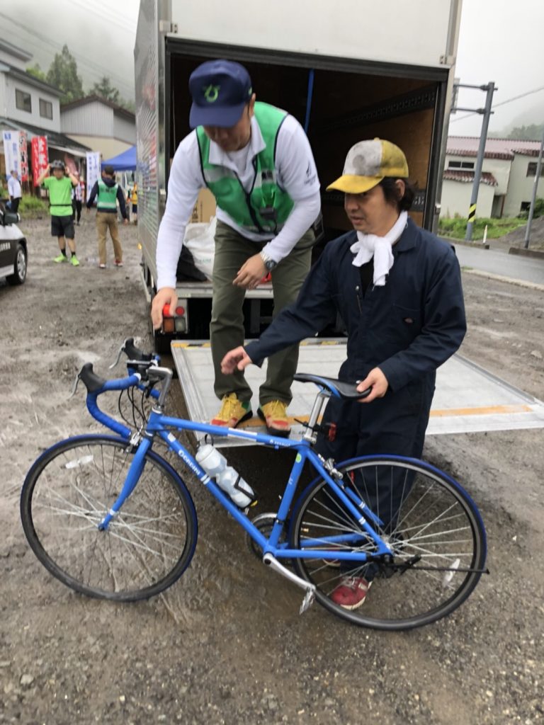 数分後、クサカの愛車前輪がまさかのパンク。序盤からトラックに運ばれてくるという波乱の幕開け