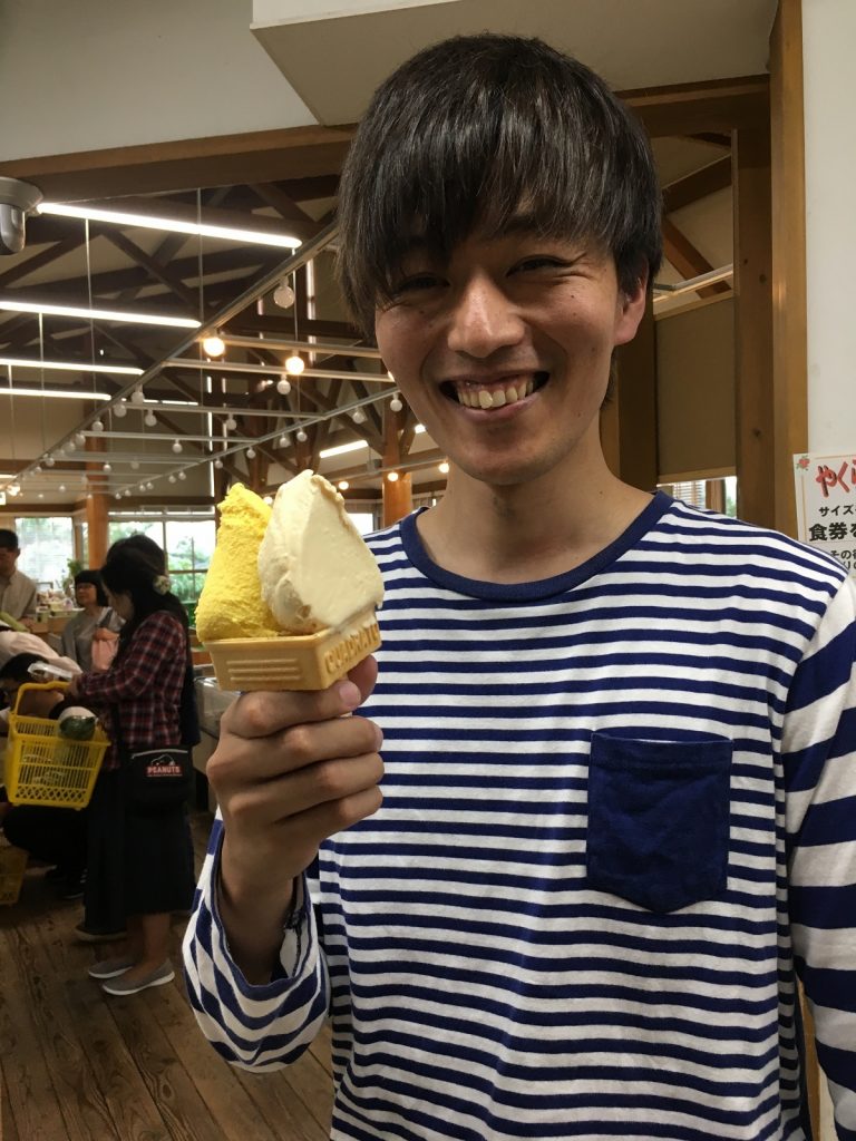 復路は往路より斜度のある山登り。心拍数をがんがん上げながら、半ば無心でペダルを回し続け何とかゴールしました! ここでお気づきの方もいるかもしれませんが、復路は必死過ぎて写真を撮るのを忘れてしまい…(何たる失態)。なんと次に撮ったのが『やくらい薬師の湯』で汗を流し終えた後に、土産センターでジェラートを満喫するクサカでした(笑)