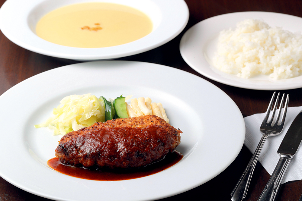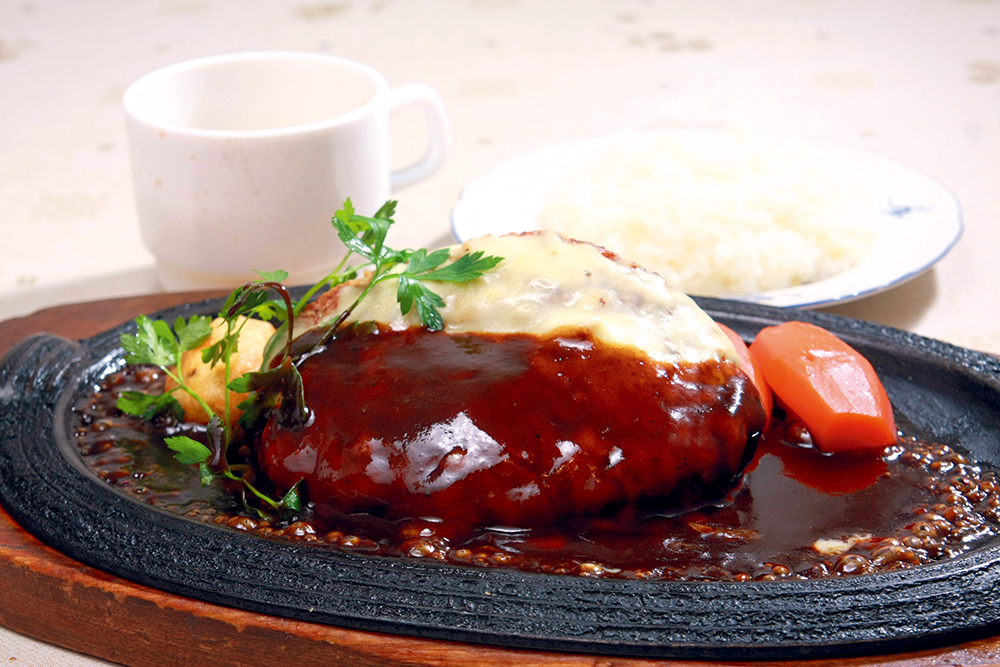70年超もの長い間、仙台市民に親しまれている老舗。先代から二代目へと受け継がれたメニューは、創業当時からレシピも味もほとんど変わっていません。中でも人気の「ハンバーグ」は牛挽き肉を100%使った、深い旨みが魅力のひと品。仕上げに白ワインでフランベを施したハンバーグは、中はふっくら、外はカリッと香ばしい至高の味わいです。