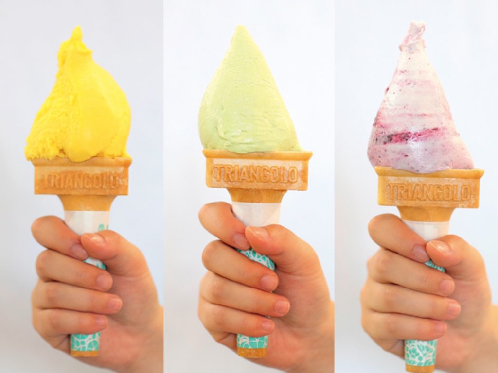 「やくらいジェラート」(左からカボチャ、当帰、ブルーベリー。各320円)