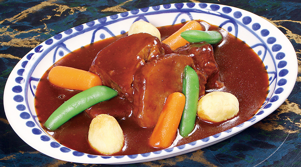 加美町の地ビール「やくらいビール」で煮込んだ、柔らかくホロホロとほどけるような牛肉の歯触りが絶品。コク深い味わいは、ビールのお供としてもぴったり。他にも、ソーセージやベーコンなどビールに合う料理がたくさん!