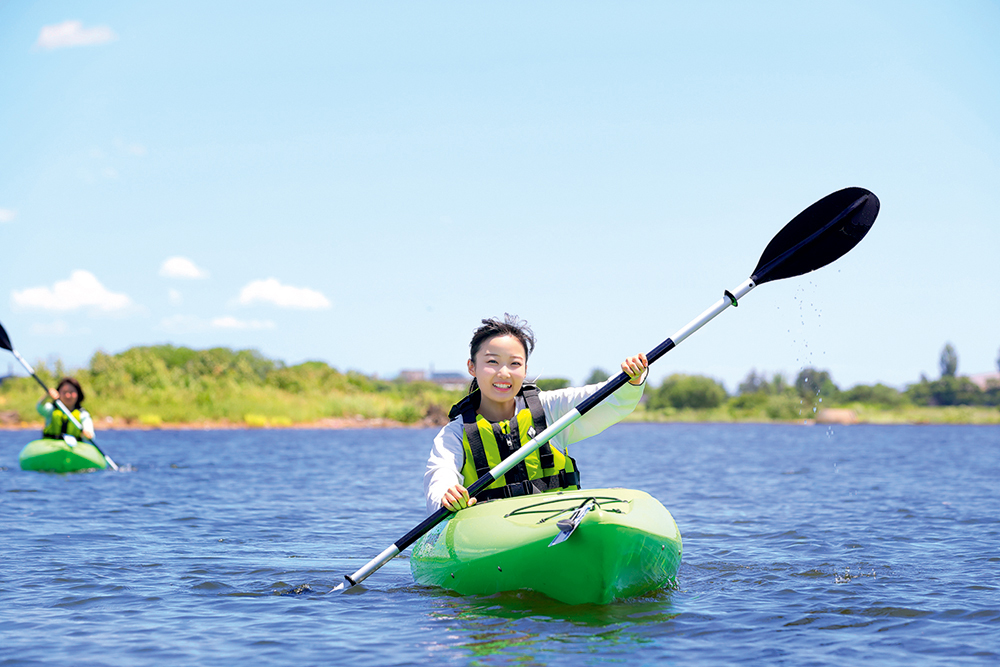 加美町役場から約2㎞にある、加美町中新田B&G海洋センター。スタッフが常駐しているので、指導者付きのカヌーレンタルやロードバイク等のレンタルが可能です。カヌーを体験できる鳴瀬川は、国体やインターハイの会場で使用された初心者にも乗りやすい水面。また、カヌー競技の高校総体や国体予選、加美町の「ドラゴンカヌー大会」なども行われます。