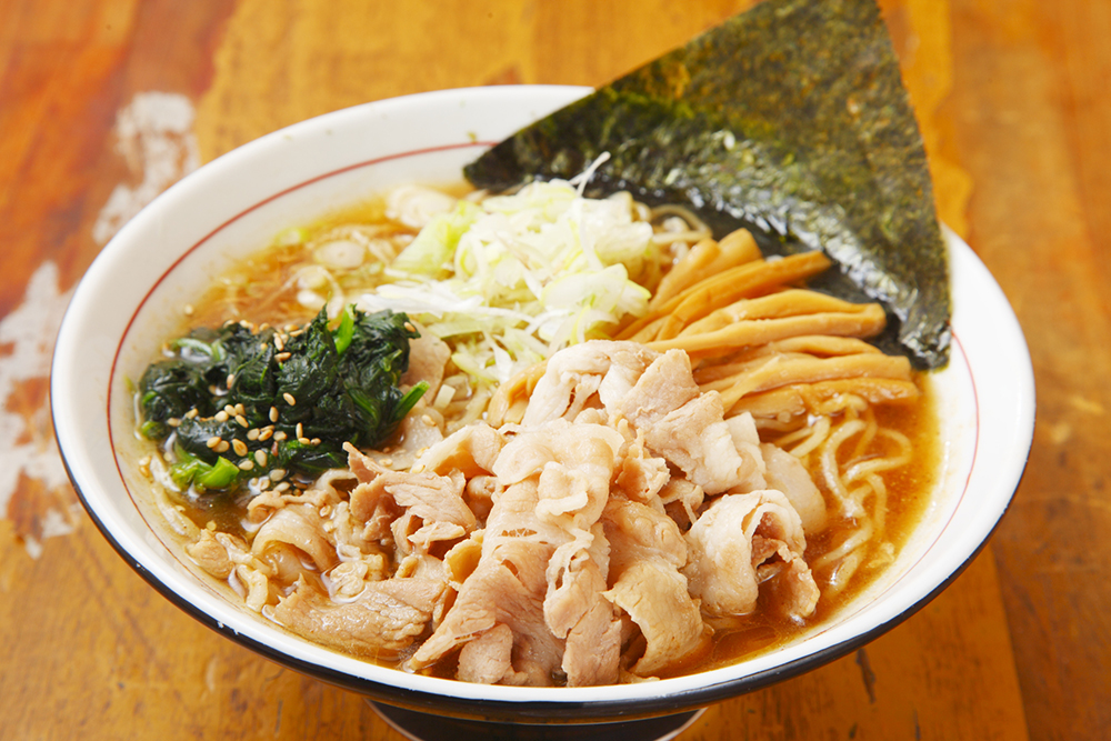 甘辛い味付けで旨みが凝縮された、国産豚バラ肉が食欲を掻き立てる一杯。ホウレンソウやメンマ、ノリなど具材も豊富だ。