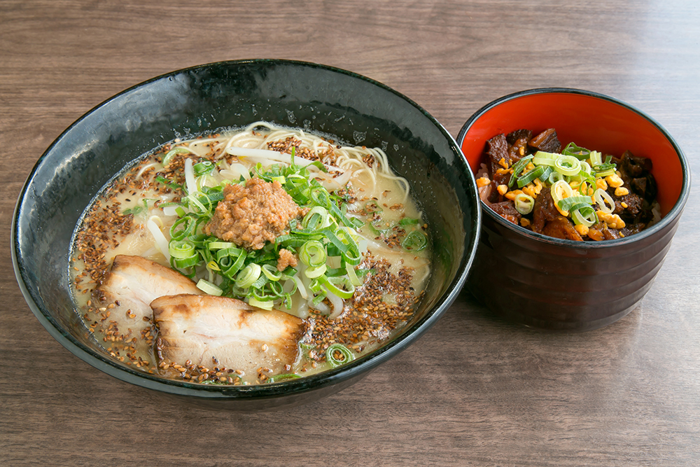 ラーメンは鶏がらベースと豚骨ベースの2種類から選択可能。特製ダレでじっくり煮込んだチャーシュー丼が付くのも嬉しい。