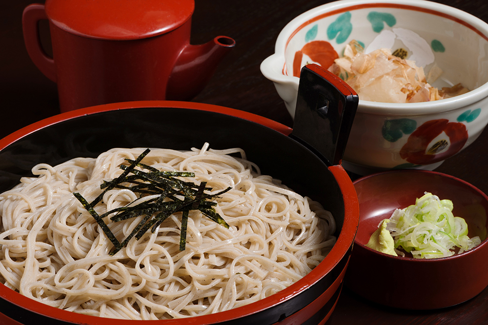 つゆは鹿児島県枕崎産の本節と亀節、鯖節、宗田節をじっくりと煮出したもの。+160円で純手打ちの田舎そあに変更できる。