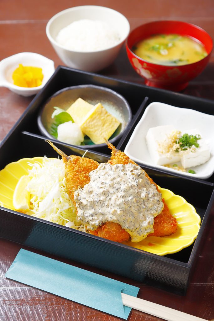 人気メニューのアジ南蛮のほか、『上村豆腐屋』の豆腐の日替りで提供。ご飯と味噌汁がおかわり無料なのもうれしい。
