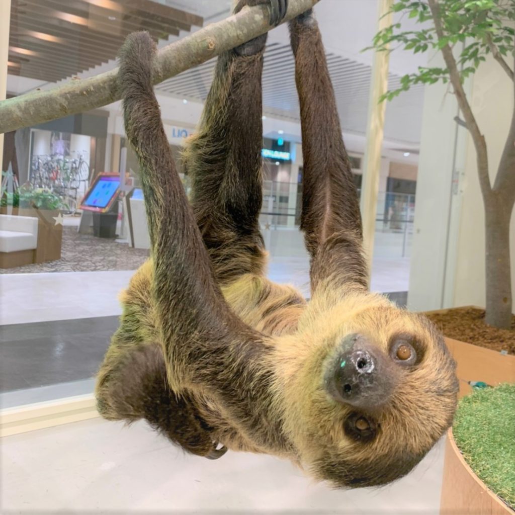 1日の大半を木の上で寝て過ごすナマケモノ。おやつタイム(不定期開催)では貴重な動く姿を見られるかも(写真提供/Moff animal cafe)