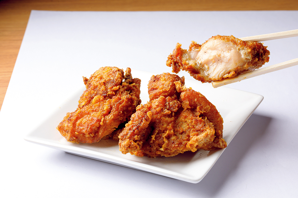 旨みが強く、ジューシーな肉質が特長の森林どりを使った唐揚げが看板メニュー。タンブリングと呼ばれる揉み込みを行うことで、しっとりとした柔らかさを実現しています。「ご飯に合うように」と、オリジナルの下味で濃いめに味付け。揚げたてはもちろん冷めても持続するおいしさで多くのリピーターを虜にしています。