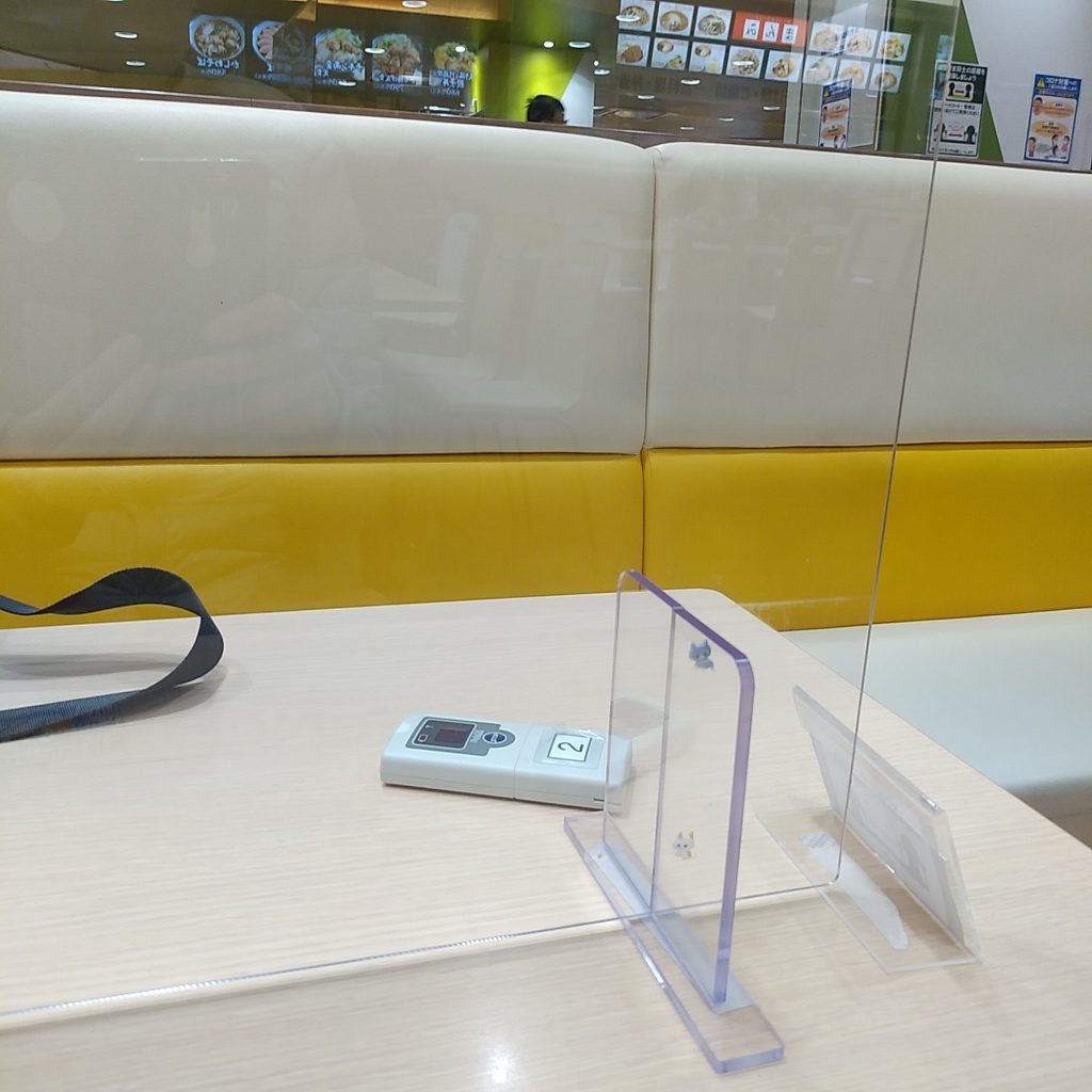 新型コロナウイルス感染症対策としてフードコートのイートイン席にはアクリル板が設置されていました