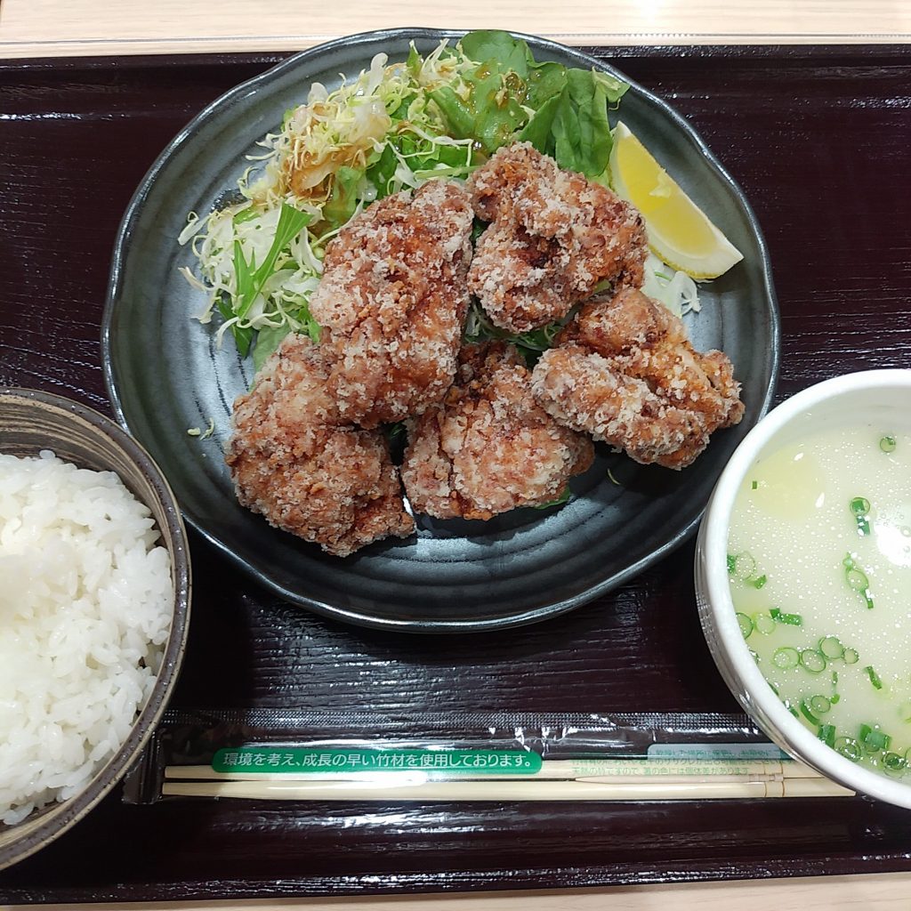「仙台味噌の唐揚げ」(定食790円)は揚げたて&ジューシーで美味。唐揚げ1個がかなり大きいです