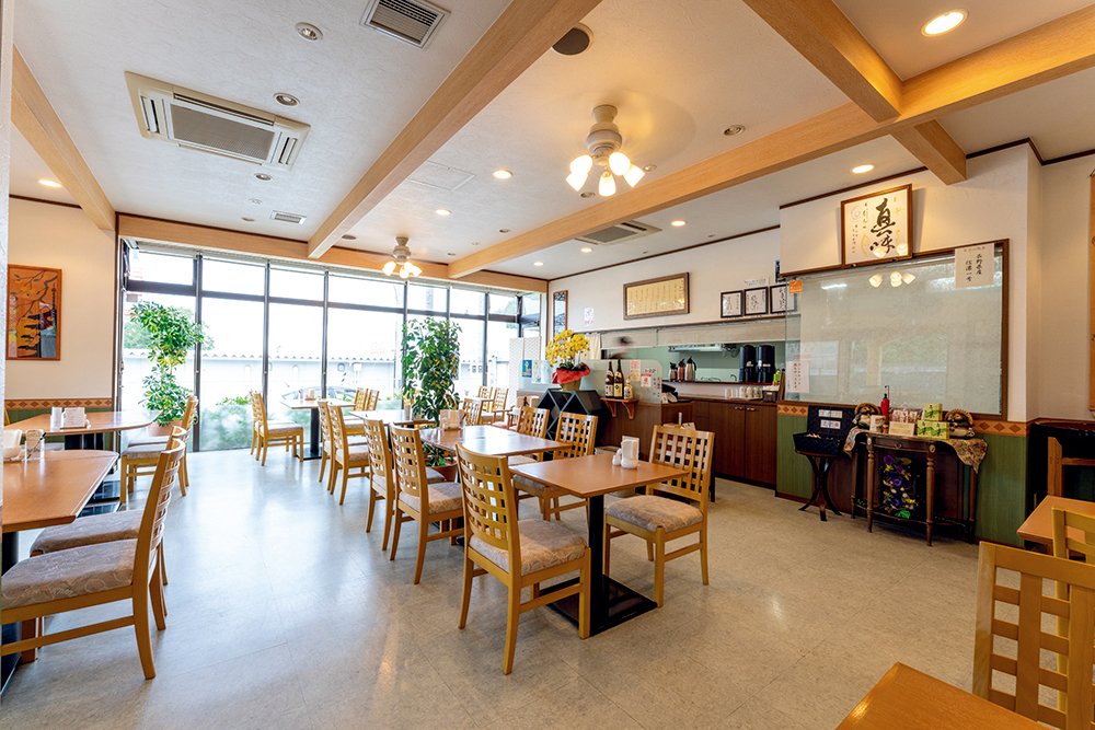 1階はカウンター席、2階はテーブル席がメイン。眺望を楽しみながら、食事からカフェタイムまでゆっくりと過ごせます