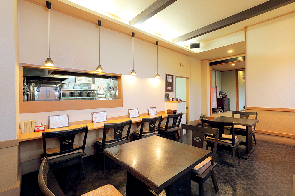 凛としたそばのように、洗練されつつも落ち着きのある店内。ゆったりと席が配置されています