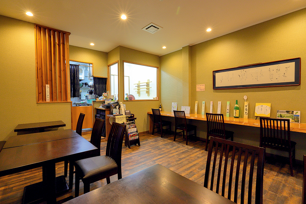 店内は木の温もりに満ちたシックな雰囲気。宮城県の酒蔵を中心に、日本酒も豊富に揃っていますよ