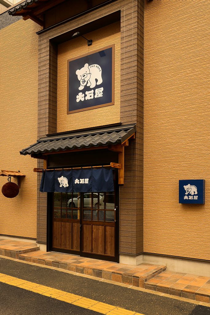 落ち着いたトーンの外壁に映える、紺色の看板が目印。キュートな熊のロゴが印象的(撮影/山口晃)