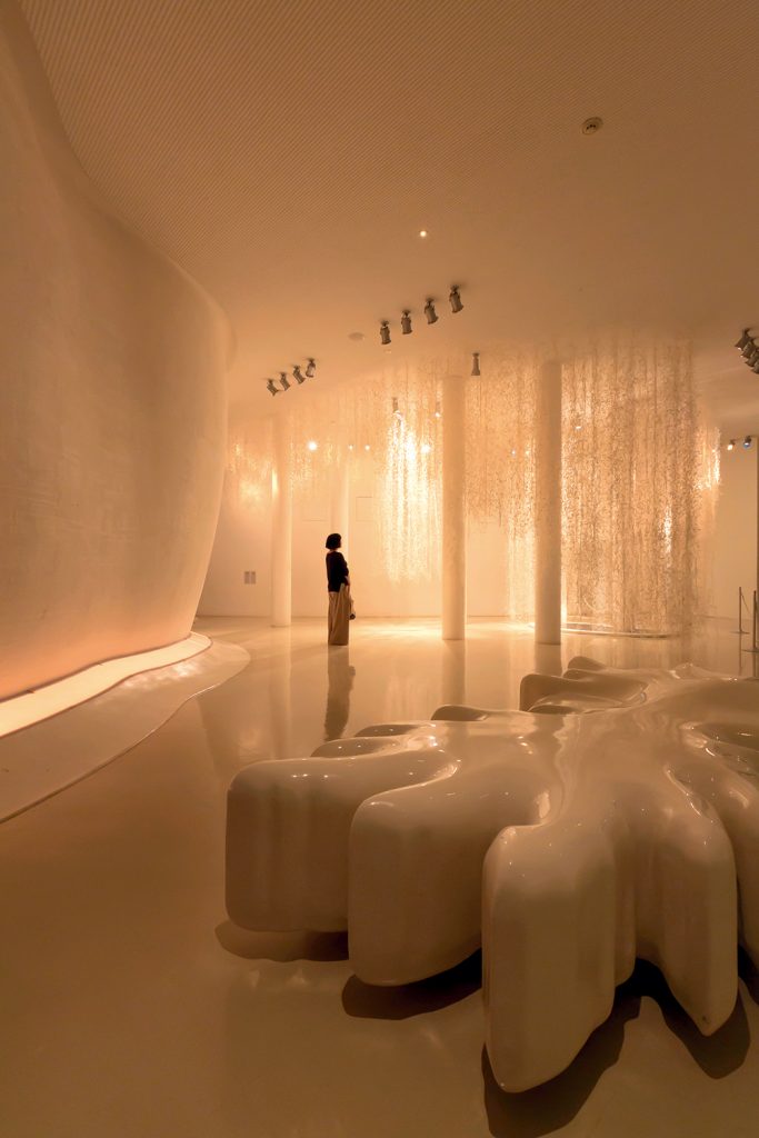 30万本のこよりで表現した「香りの森」。こよりと光が織りなす幻想的な空間に身を委ねて