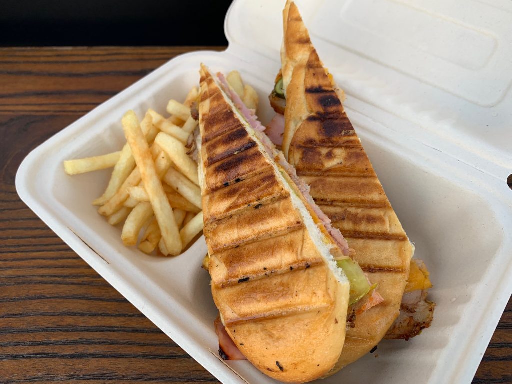 ベーシックなキューバンサンドイッチ「クバーノ」をオーダー。今回は選べるサイドディッシュ付のプランからフレンチフライを選択