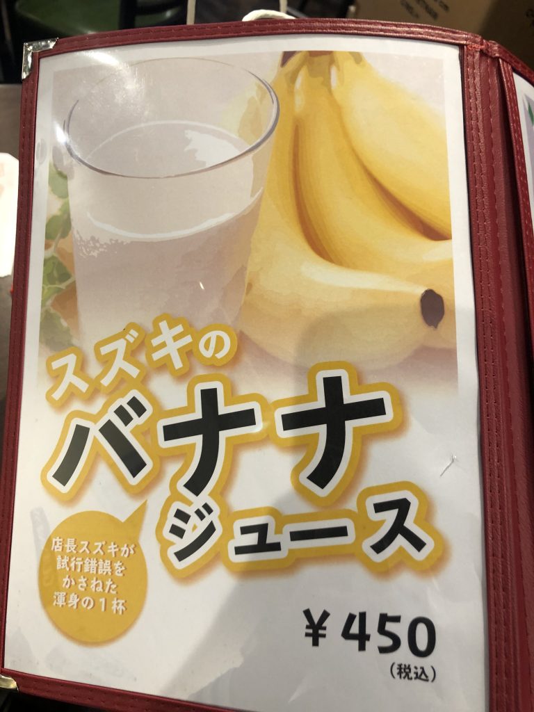 「スズキのバナナジュース」(450円)。スズキさんとは、店長さんのことらしいです