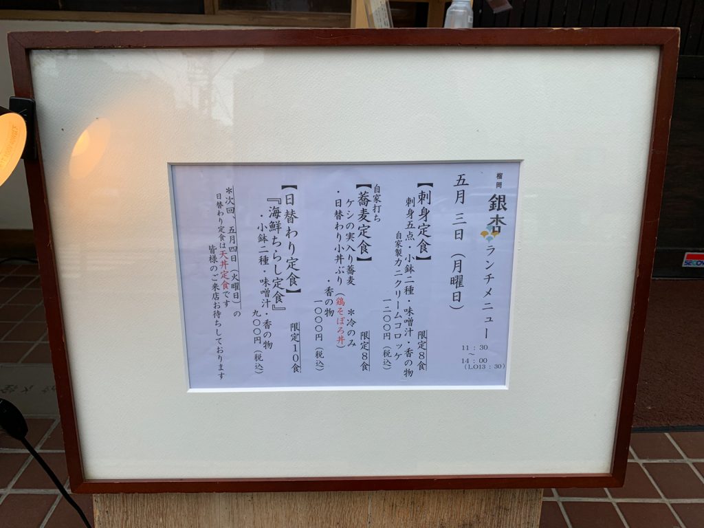榴岡『銀杏』さんのお昼のお品書きがこちら。