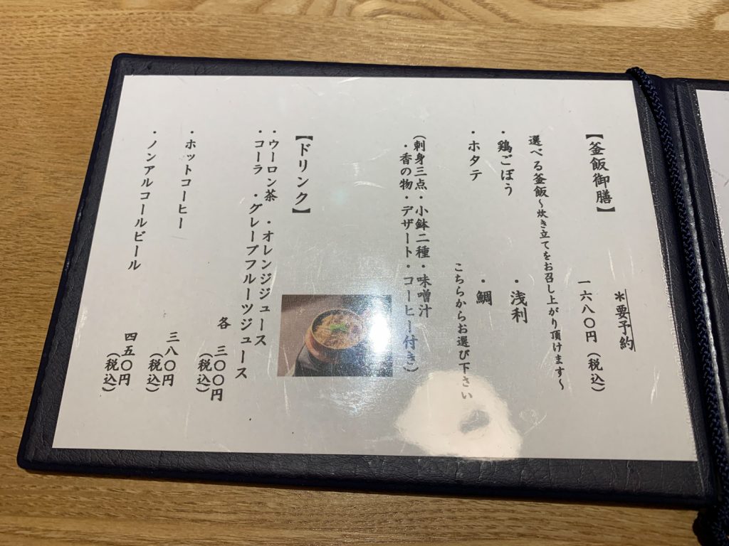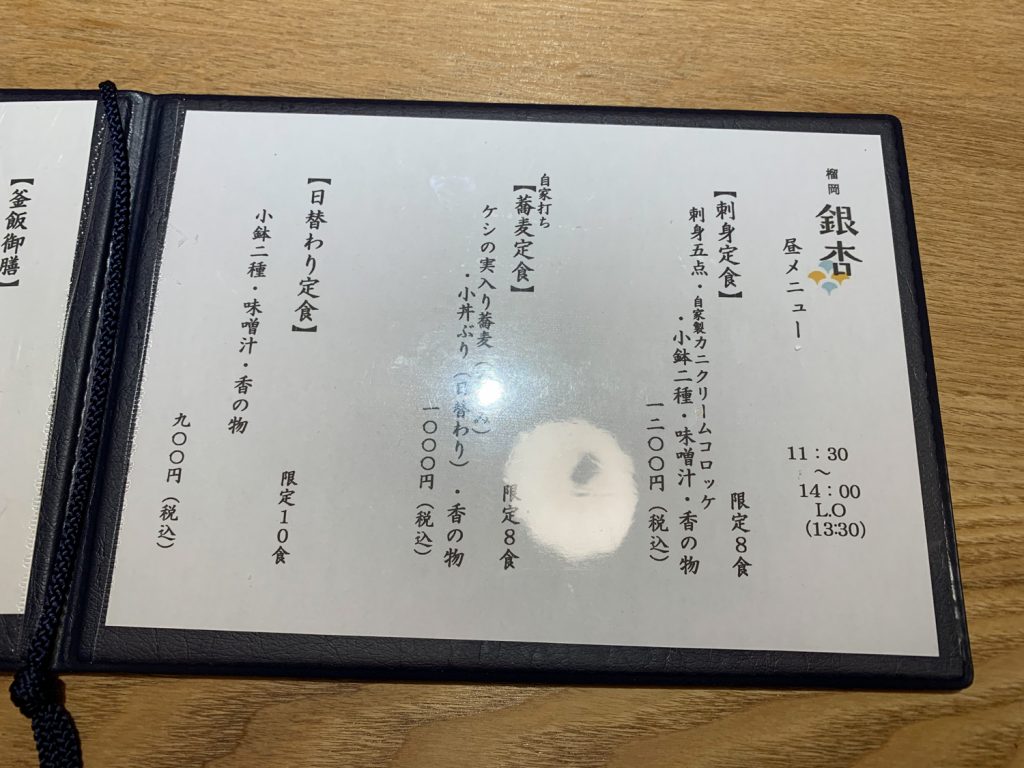 『銀杏』さんでは、今回いただいた「釜飯御膳」のほか、日替り定食や刺身定食などもラインナップしています。