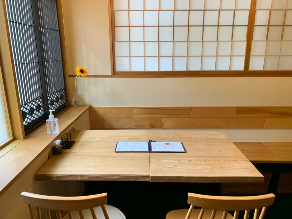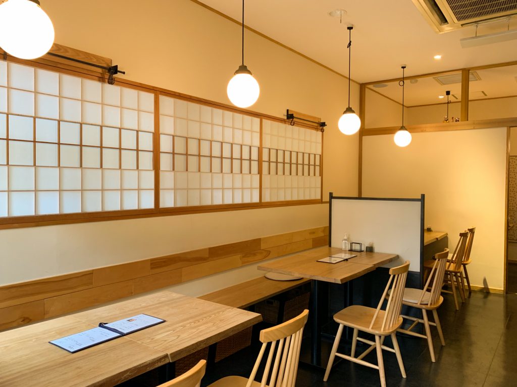 店内にはカウンター席とテーブル席があり、広々と席が配置されています。