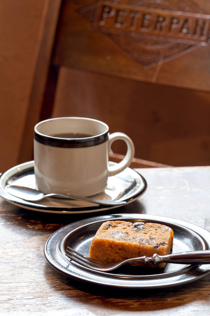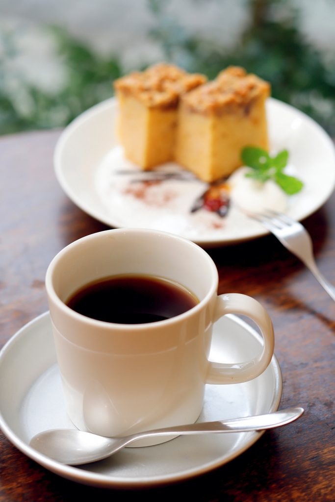 「レギュラーコーヒー」(550円)、自家製の「フルーツケーキ」(250円)