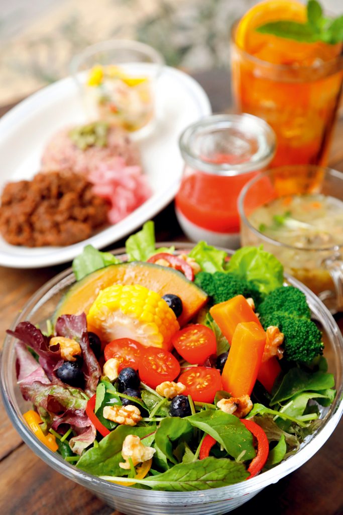 街中でありながらどこかのんびりとした雰囲気が魅力の一軒。フィットネスインストラクターでもあるオーナーが“運動・栄養・休養のバランス”をテーマに、おいしくヘルシーなランチやドリンクを提供しています。晴れた日には通りに面する大きな窓が開け放たれ、オープンテラスに変身! 木漏れ日とそよ風を感じながら、身体も喜ぶメニューを召し上がれ。