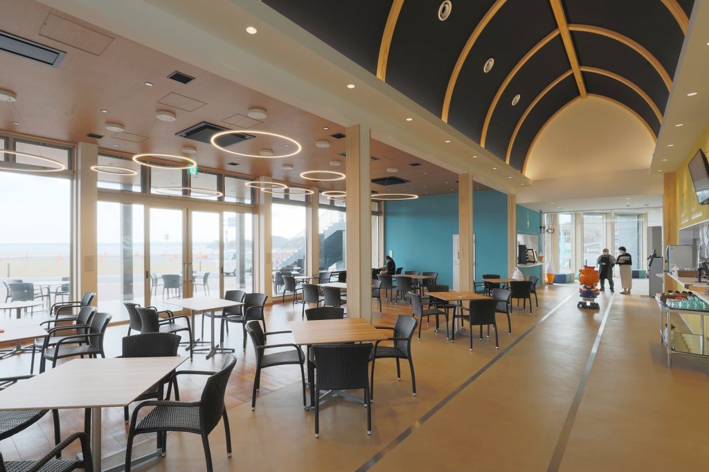 館内の『カフェテリア umicoco』。軽食からガッツリ飯まで揃うので、ドライブの休憩にももってこい。食事メニューは券売機で購入を