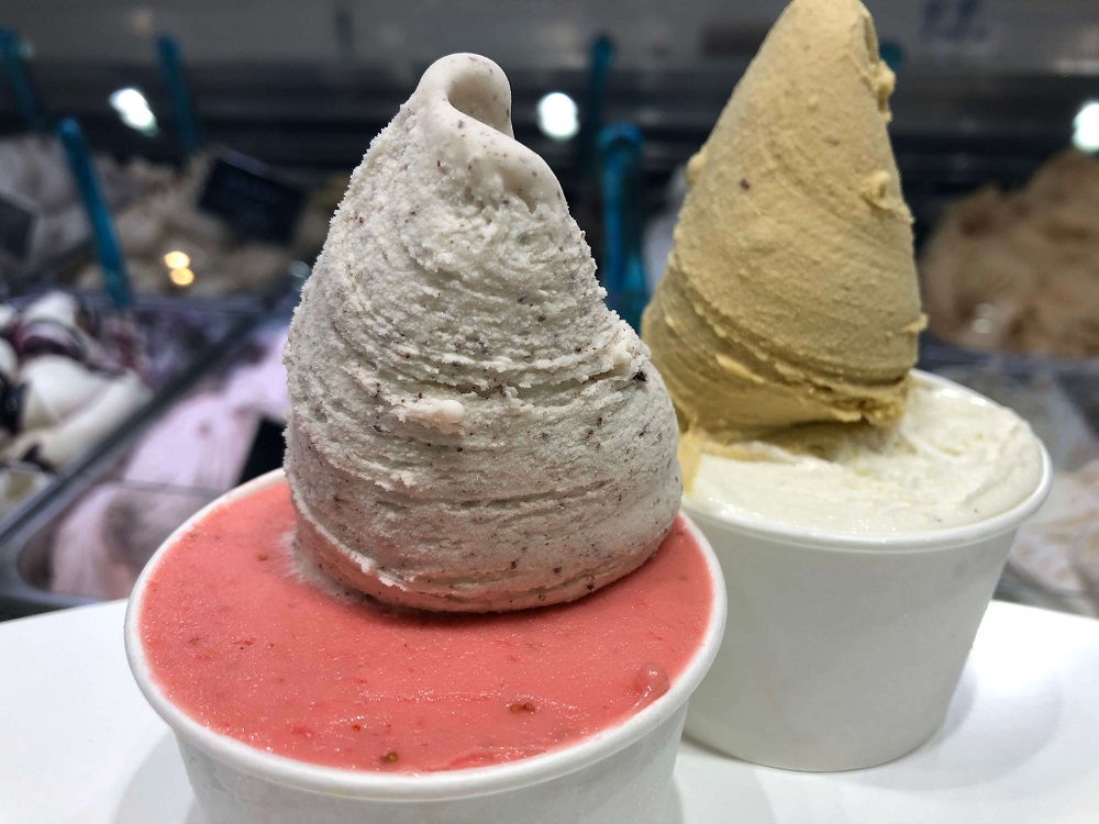 上記で触れた『Gelateria Liberta』のジェラート。「ストラッチャテッラといちご」(写真左)「ピスタチオとノチョーラ」(写真右)各650円。他にも多彩なフレーバーが登場