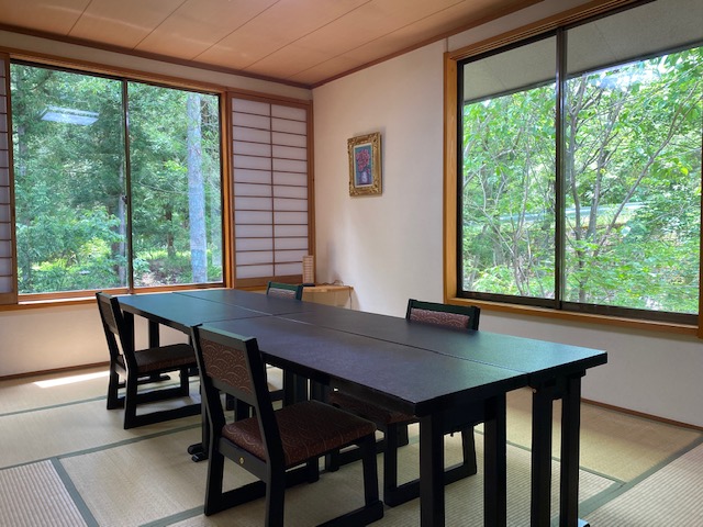 個室食事処にもテラスもついていて、光と風、緑を楽しめる心地よい空間です