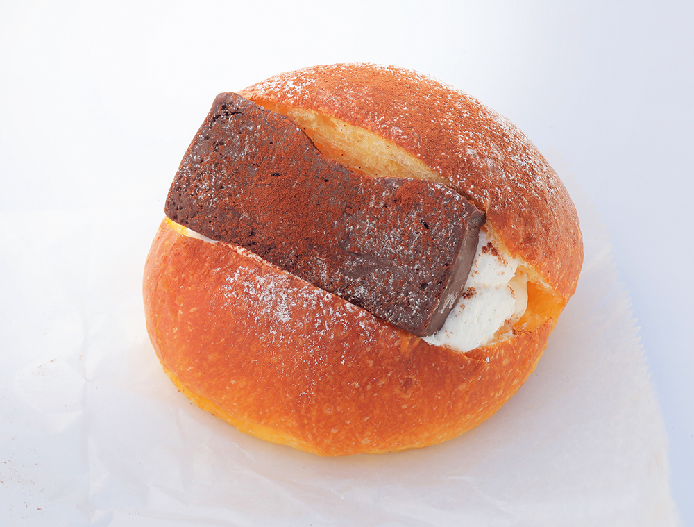 パン職人のご主人とパティシエの奥さまが二人三脚で営む『BOULANGERIE BEC』では、2人の技を結集させたマリトッツォを月替りで提供しています。5~6月は奥さま謹製のショコラテリーヌをメインに据えた逸品が登場! 濃厚テリーヌをふかふかブリオッシュでサンドし、軽さが特徴の九州産生クリームでさっぱりとまとめあげています。