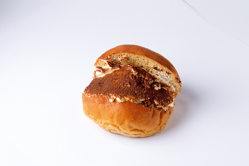 「ティラミスマリトッツォ」(345円)には、香り高いコーヒーとココアの粉末をトッピング
