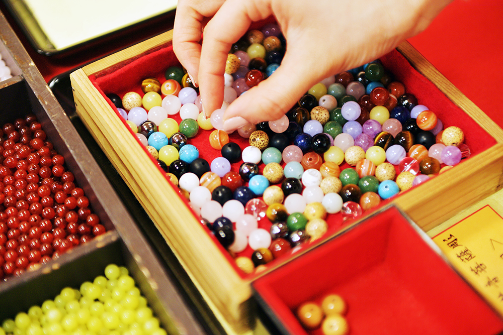 好みの石を選んで、世界にひとつだけの数珠を作れますよ