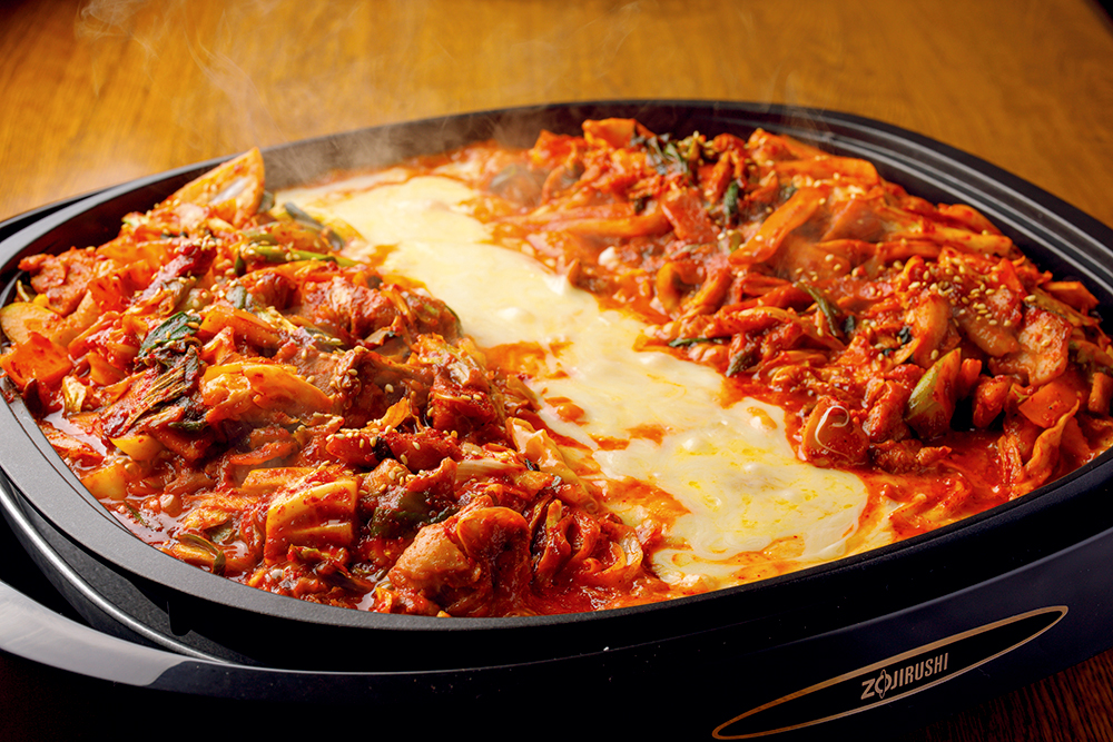事前予約制のコース料理(4名以上より受付)でのみ注文できる「チーズタッカルビ」。〆には秘密のサプライズが登場!