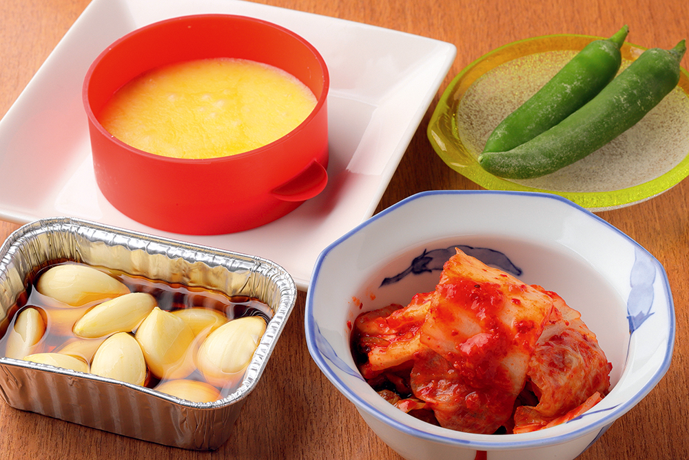 • 味変を楽しみたい人には「キムチ」「韓国産青唐辛子」などの追加オプションも