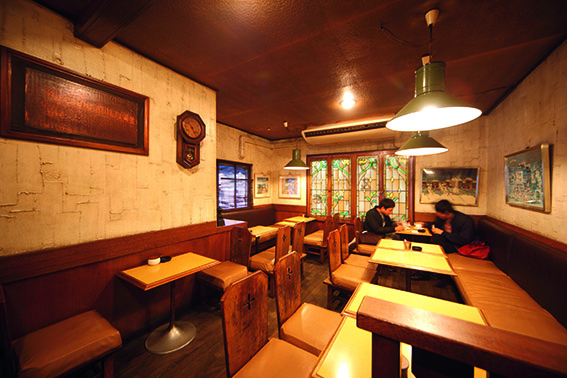 細い階段をあがった二階。昭和から変わらぬ店内は落ち着く雰囲気